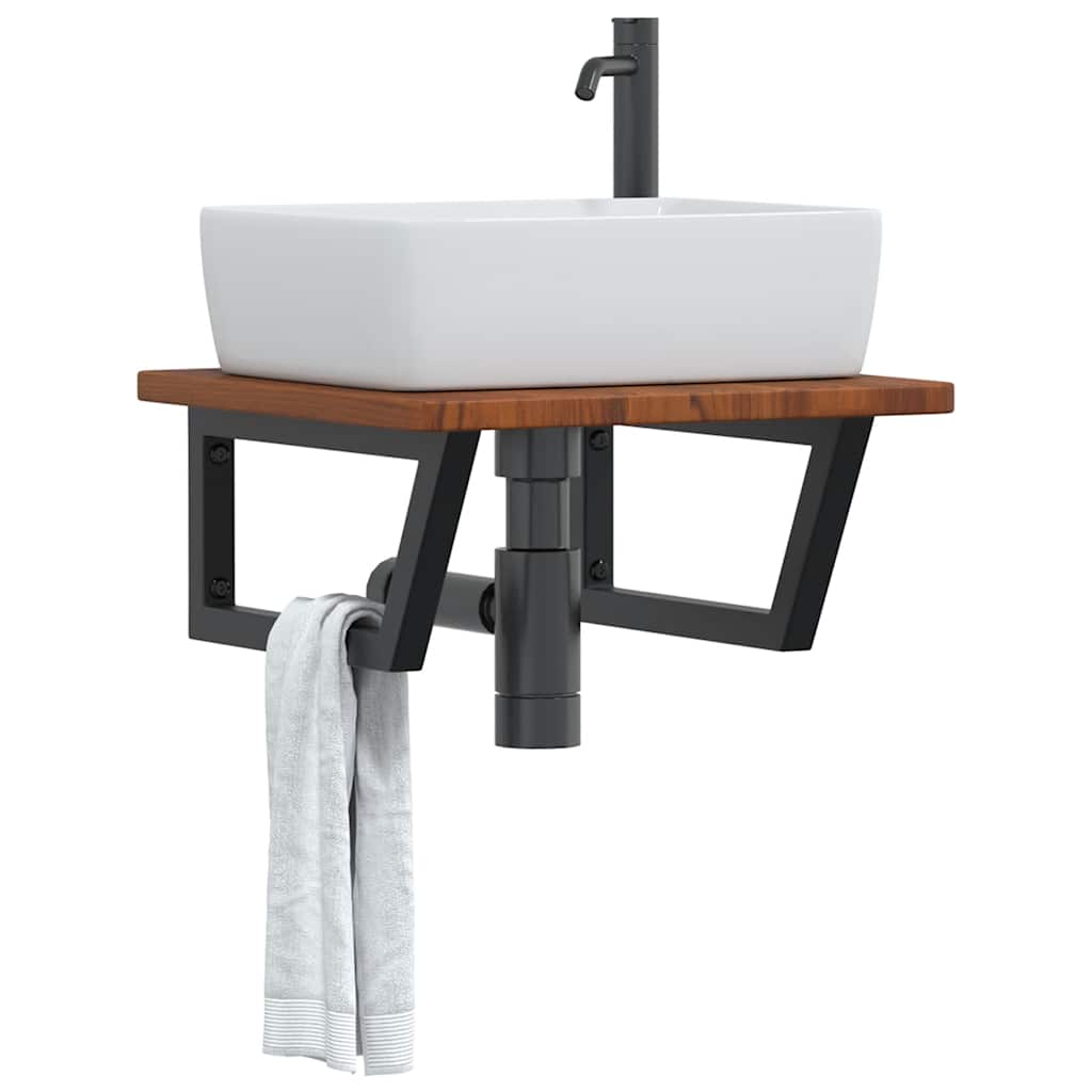 The wall mounted basin shelf securely attaches to the wall, providing an elegant and space-saving solution for your bathroom. Sturdy and long-lasting: This basin shelf is combined with a steel structure and a solid oak wood top, making it sturdy, stable, and long-lasting. Space-saving: The floating basin shelf has ample space to store creams and small items. Thanks to the trapezium shape, you can hang towels or other things on the support to save space. Easy to use: The countertop comes undrilled to allow the basin to be mounted on the left, right, or in the centre, depending on your room's requirements. Thanks to the pre-drilled holes in the holder, it can be easily assembled with the tabletop and mounted on the wall. Wide applications: Thanks to its modern design, it provides additional space for various types of bathrooms. Good to know:Screws are not included, you can purchase the screws separately based on the information provided below. Wall attachment: 2 pcs M8 expansion screws per bracket Wooden top: 2 pcs M5x18 screws (T=2) or 2 pcs M5x20 screws (T=2,5/4cm) per bracket