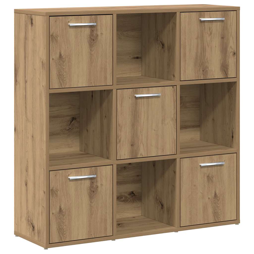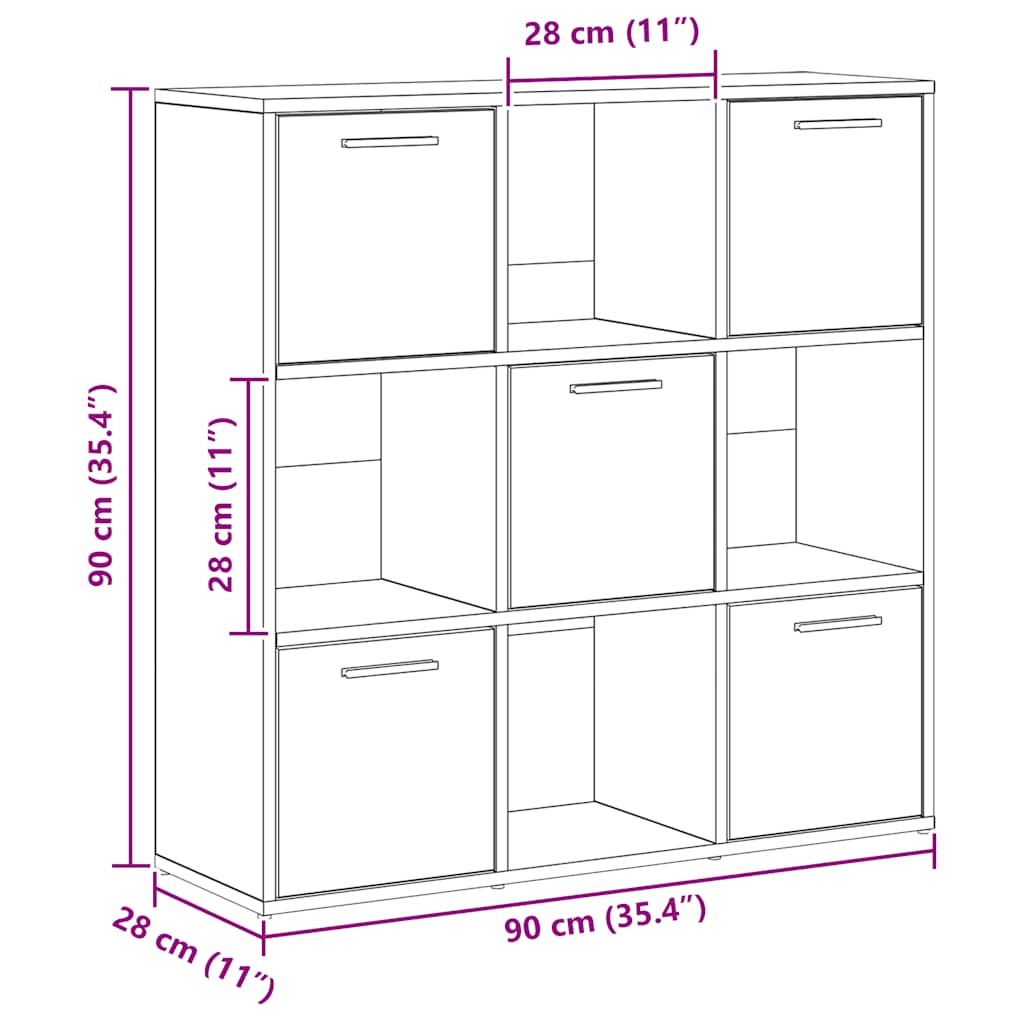 Create extra storage in your home or office with this bookshelf!Durable material: The bookcase is made of engineered wood. The engineered wood is of exceptional quality with a smooth surface and features strength, stability, and resistance to moisture.Ample storage space: The book cabinet has 9 compartments, offering ample storage space for keeping your magazines, books, decorative items, and other daily essentials well organised and within reach.Sturdy frame: Steel is an exceptionally hard and strong. It offers sturdiness and stability.Raised edges design: With raised edges in the back area, this book rack helps protect your books from falling off.Industrial style: Add a charming industrial style to your current interior decor. This storage rack adds the inspired design of old factories and industrial space to your living area.Warning:To prevent it from tipping over, this product must be used with the wall attachment device (not provided).