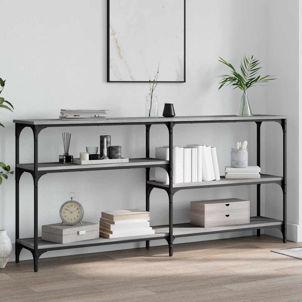 Add a touch of elegance to your entryway, living room, or hallway with this stylish console table. Durable material: The engineered wood is of exceptional quality with smooth surface and also features strength, stability and resistance to moisture. Made of engineered wood, the sofa table is easy to clean.Ample storage space: The hall table offers ample storage space for keeping your magazines, books, decorative items, and other daily essentials well-organised and within reach.Adjustable feet: Six adjustable feet with plastic pads keep the hallway table balanced on uneven ground and increase stability.Metal frame: The metal frame adds an industrial style to your interior while ensuring durability and stability. Warning:To prevent it being overturned, this product must be used with the provided wall attachment device.