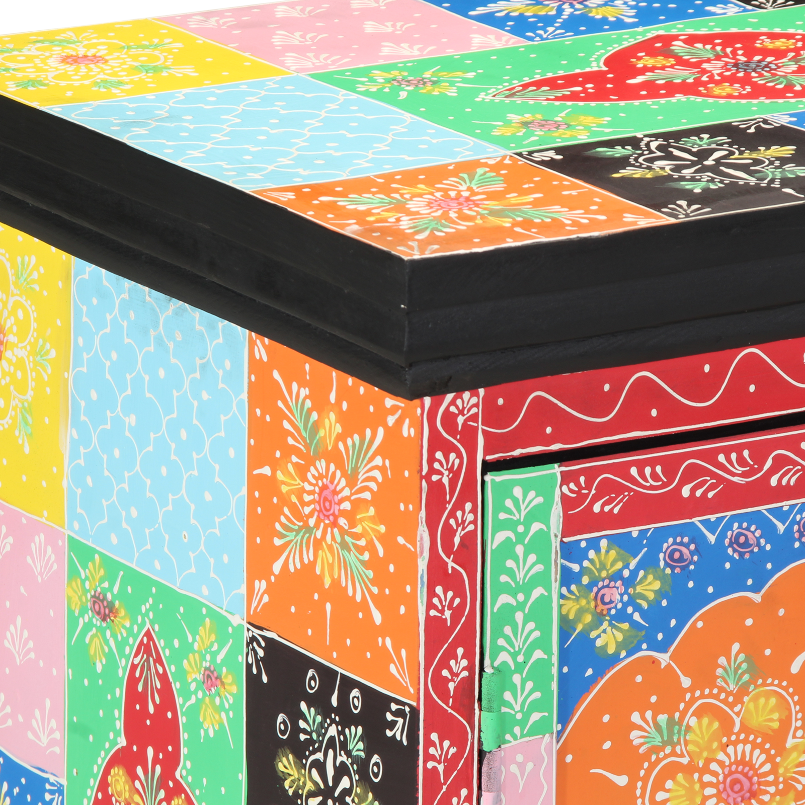 This console table is a lovely example of bohemian style, with a charming mix of colours that creates a welcoming vibe in any entryway or living room. Made with care from natural wood, it boasts a smooth feel that's both cozy and classy, making it a delightful addition to your home decor. Unique Design: The table features a vibrant patchwork pattern that draws the eye, making this piece a striking focal point in any room. Functional Storage: Its innovative design includes a hidden compartment that gives you a discreet space for stashing everyday essentials, marrying style with practicality. Quality Craftsmanship: Made from top-notch natural wood, this console table promises durability and stands the test of time while keeping its good looks. Versatile Use: This console table is flexible enough to use in various spaces – whether in your foyer to greet guests or your living room as an accent piece, it adds character anywhere. Easy Maintenance: Designed for daily use, just wipe with a dry cloth to keep it looking fresh, while avoiding direct sunlight to protect its bright colours.