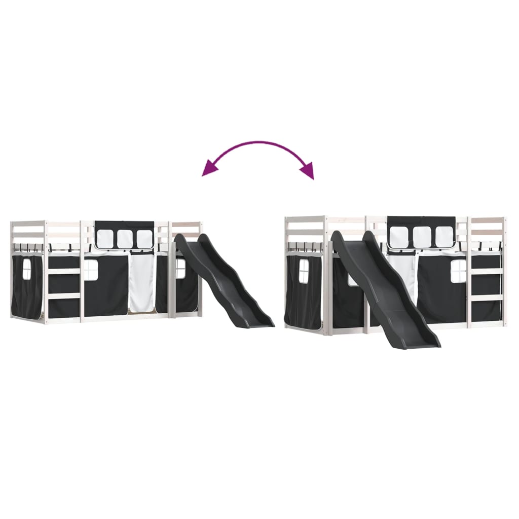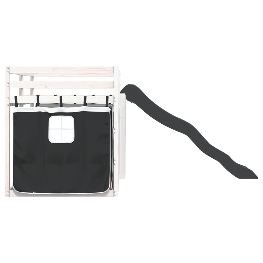 This wooden bunk bed is elegant and functional, making it a perfect addition to any room with limited space. Solid pine wood: This bunk bed is made of solid pine wood for stability and durability. Pine wood has a straight grain, and the knots give the material its signature, rustic look.Great fun: You can combine the curtains with the low bunk bed to create your child's secret base, providing great fun at bedtime and adding a focal point to the bedroom!Safety guardrails: The top bunk comes with safety guardrails on all 4 sides, so your child can sleep without worrying about falling off.Convenient ladder and slide: This double bunk bed has a fun slide that brings joy and turns their room into an indoor playground. The combination of a climbing ladder and slide makes bedtime livelier and more interesting for children.Sturdy slats: The plywood slats provide good weight distribution, ensuring that the mattress stays in place with every twist and turn of your body during sleep. Good to know:A mattress is not included with this bed. We do offer a various selection of mattresses. You can check our shop for a matching mattress. Warning:To prevent it from tipping over, this product must be used with the provided wall attachment device.