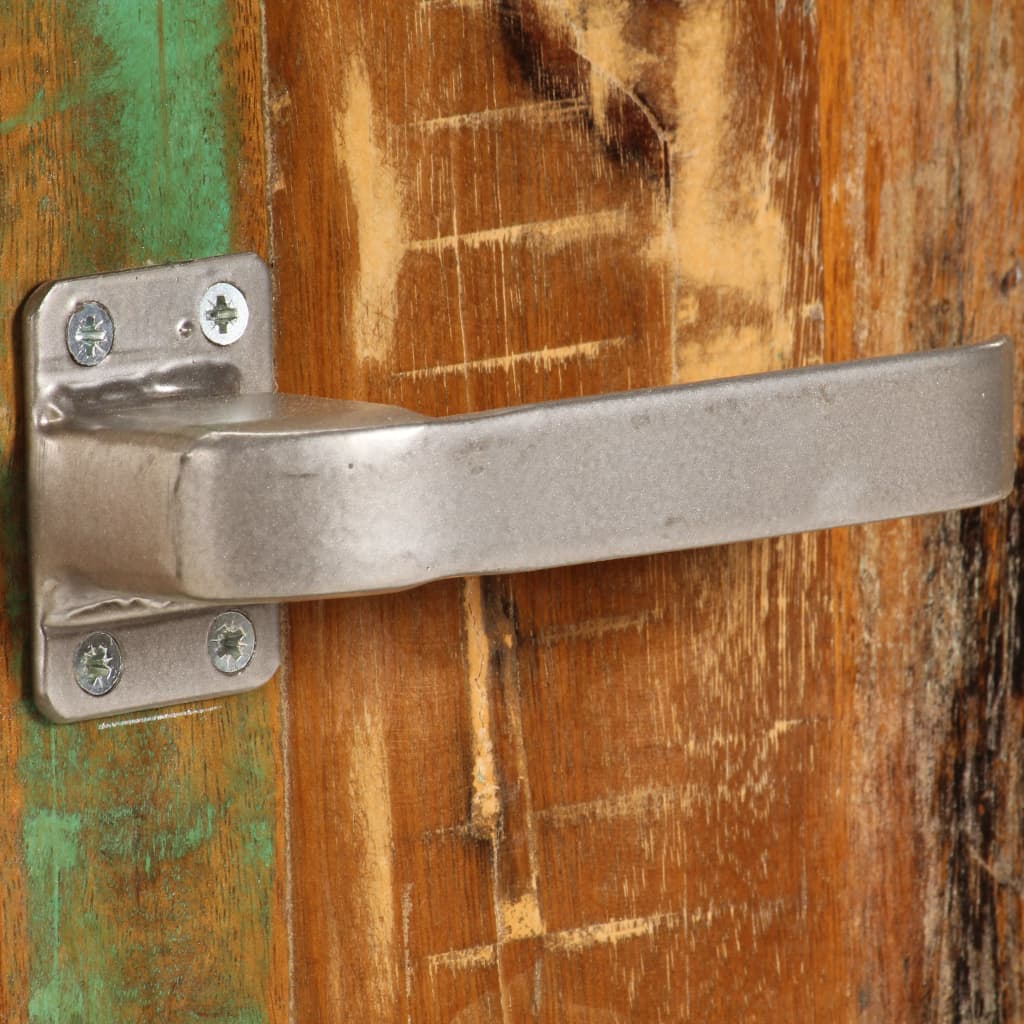 This classic-style wooden bedside cabinet exudes a vintage charm. It will surely make an eye-catching addition to your interior. The bed cabinet is made of solid reclaimed wood which has been sourced from joists, floors and support beams from old buildings being demolished, and additionally it is capable to consist of different types of wood like pine, teak, beech, oak, cedar, mango wood, acacia, etc. This means the reclaimed wood retains the characteristics of these different types of wood. Reclaimed wood is already aged, weathered and dried, and consequently it doesn't shrink or bend. This nightstand is fully handmade and the nice-looking wood grains make every piece of furniture distinctive and slightly different from each other. The metal hardware adds the cabinet's industrial style. This box cabinet provides space for storing your books, notepads, pens, as well as other knick-knacks. Equipped with 4 casters, the cabinet is easy to move around. Important note: The colours vary from piece to piece, making each piece unique. The delivery is random, ensuring the exclusivity and individuality of your product.
