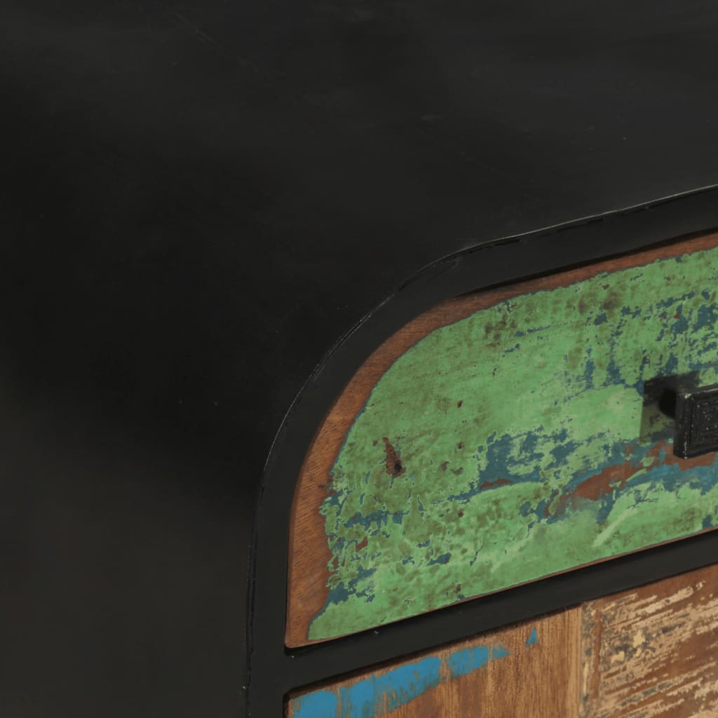 This antique-style wooden sideboard with 4 drawers and 4 compartments offers you ample storage space and helps you to maintain your items in great order. This storage sideboard is made from solid reclaimed wood, which means that the sideboard has the characteristics of different woods like mahogany, teak, hard wood, mango wood, acacia, etc. Reclaimed wood is solid, stable, durable, and beautiful. Keeping this piece of furniture at home will show your concept of resource conservation, environment protection and sustainable development. Every piece of this furniture is unique, and slightly different from the next. Signs of wear give each piece a unique look and add to its spectacular vintage style. This cabinet is fully handmade, and the craftsmanship adds to its spectacular retro style. Every process of recombining, polishing, painting and lacquering is elaborately prepared. Assembly is easy. Important note: The colour may vary from piece to piece, making each of our sideboards unique. The delivery is random, ensuring the exclusivity and individuality of your product.
