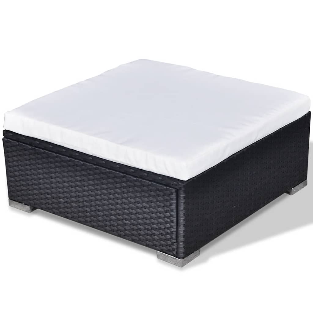 This rattan garden sofa and table set will make a great addition to your outdoor living space. It will add a touch of modern elegance to your patio, balcony or garden with its understated, yet stylish design. Made of weather-resistant and waterproof PE rattan, the set is easy to clean, hard-wearing and suitable for daily use. The powder-coated steel frame makes the set very sturdy and durable. Thanks to the lightweight construction, it is easy to move around. This set is delivered with highly comfortable, thickly padded seat and back cushions. The cushion covers are removable and washable. Delivery includes 2 corner sofas, 1 centre sofa, 1 armchair, 1 stool, 1 coffee table and 11 cushions. Note: We recommend covering the set in the rain, snow and frost.