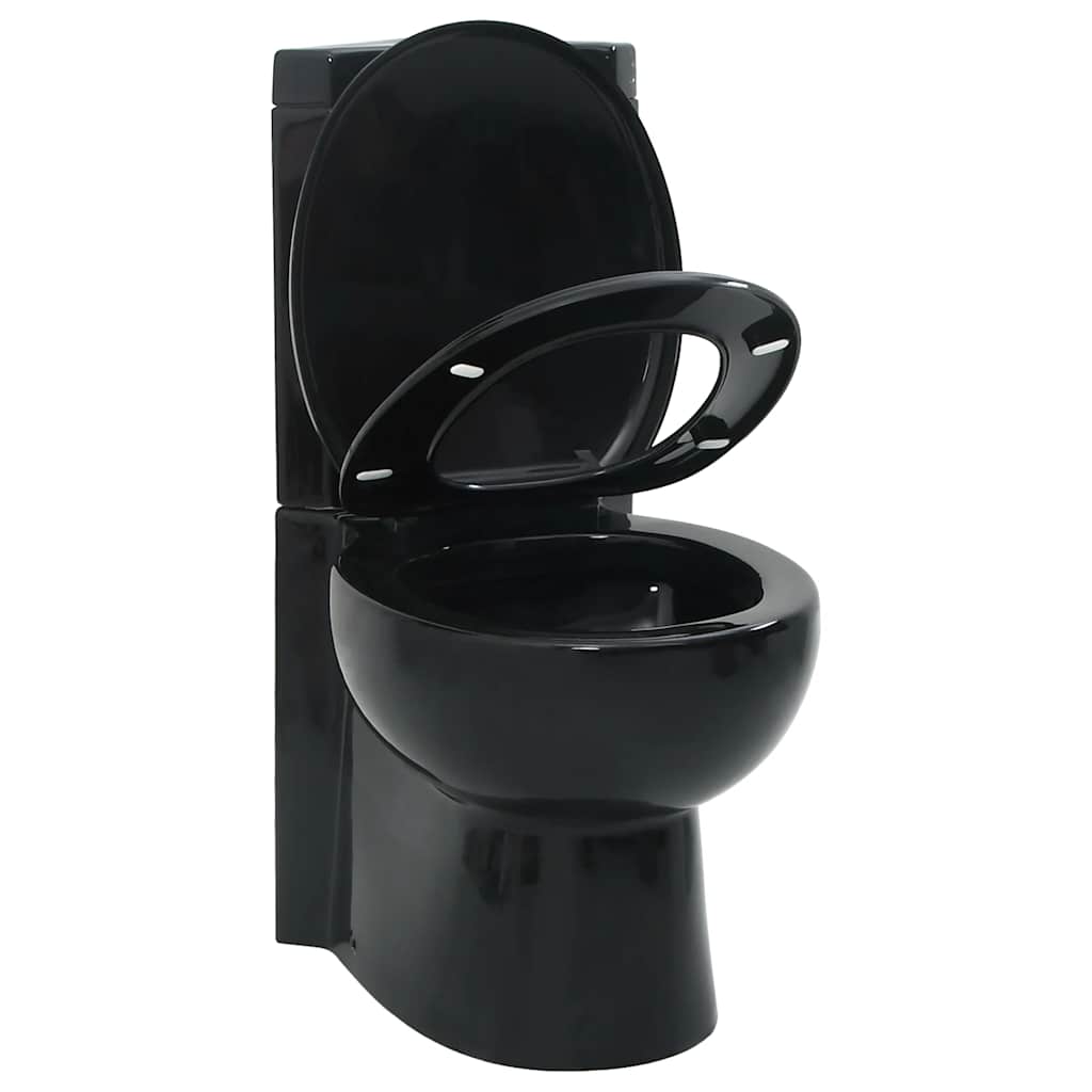This modern toilet has a timeless design, bringing a touch of style to wherever it goes. It fits perfectly to the bathroom corner. The toilet seat has a soft close mechanism which prevents loud slamming on the toilet bowl. Just a fingertip touch and the lid closes all by itself. The water-saving dual flush system allows you to use 3 or 6 liters of water. Made of quality ceramic, this toilet is durable for years of use.