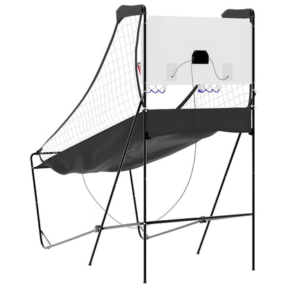 This basketball arcade machine is an ideal choice to provide hours of fun for family and friends at parties or other events. Dual-player mode: This machine features 2 basketball hoops, allowing for multiple-player interactions, making it ideal for parties and family gatherings.Electronic scoring system: The basketball machine is equipped with an automatic electronic scoring system and LED display. It tracks scores accurately, enhancing the arcade-style experience.Sturdy and durable material: This basketball machine is made of a durable iron frame and reinforced hoops, ensuring long-lasting use for both kids and adults.Space-saving and foldable: The basketball arcade machine offers a foldable design, making it easy to store when not in use, saving space in your home or game room. Warning:This product contains small parts that may pose a choking hazard and should be used only under direct adult supervision.Warning:This toy has sharp functional edges and functional points.
