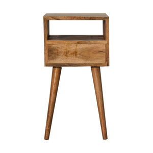 This beautiful and neat bedside is constructed from 100% solid mango wood and has a fine oak-ish finish. Useful storage space is available with 1 blush pink hand-painted drawer, 1 shelf, and a decent-sized tabletop to place any ornaments. Other features include 4 Scandinavian-styled legs. Height : 57cm, Width : 30cm, Depth : 30cm, Carton Height : 35cm, Carton Width : 40cm, Carton Deapth : 40cm,