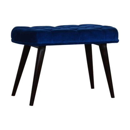 This Nordic style bench has been upholstered in a beautiful Royal Blue cotton velvet fabric and features a classy deep-button design on the top. The bench stands on 4 legs constructed from 100% solid mango wood in a walnut finish and it is the perfect piece to add to your bedroom or hallway as a finishing touch in the home. Height : 47cm, Width : 78cm, Depth : 35cm, Carton Height : 23cm, Carton Width : 86cm, Carton Deapth : 43cm,