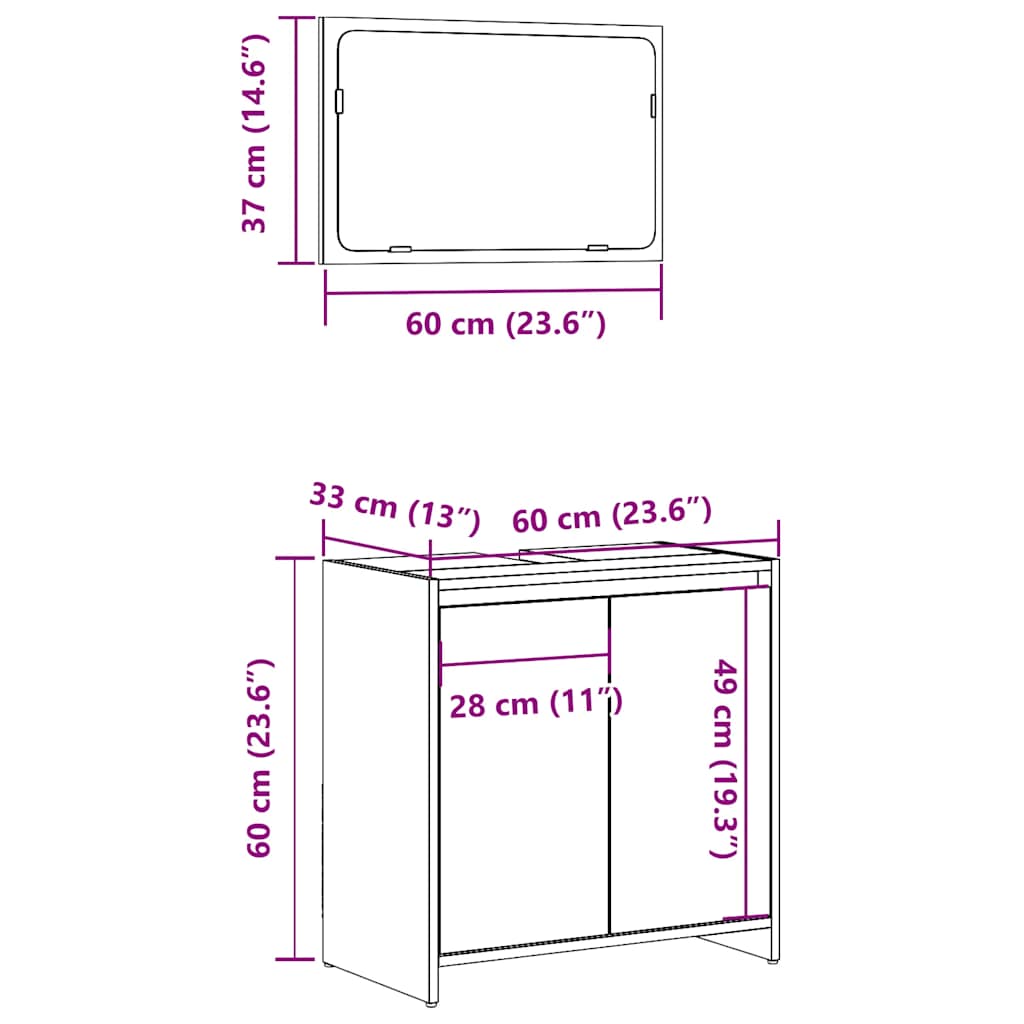 This stylish bathroom furniture set is an excellent addition to your bathroom, giving it a tidy and striking appearance! Stable and durable material: Engineered wood is a durable and stable material with a smooth surface that is resistant to moisture, warping, and splitting, making it a reliable choice for a variety of projects.Practical cabinet top: The top of the sink cabinet has a hole, so it is ideal for placing the sink.Ample storage space: This bathroom furniture offers ample storage space to keep your essentials well organised and within reach.Practical door: The door of the storage cabinet provides enclosed storage space to keep your belongings organised, protected and out of sight.Easy to maintain: Thanks to its smooth surface, the bathroom cabinet is easy to clean with a damp cloth and requires less maintenance. Warning:To prevent it from tipping over, this product must be used with the provided wall attachment device. Good to know:Screws and plugs for inside the wall are not included. We advise to find and use screws and plugs suitable specifically for your walls. If you're not sure, you can consult with a professional. Please read and follow each step of the instructions.