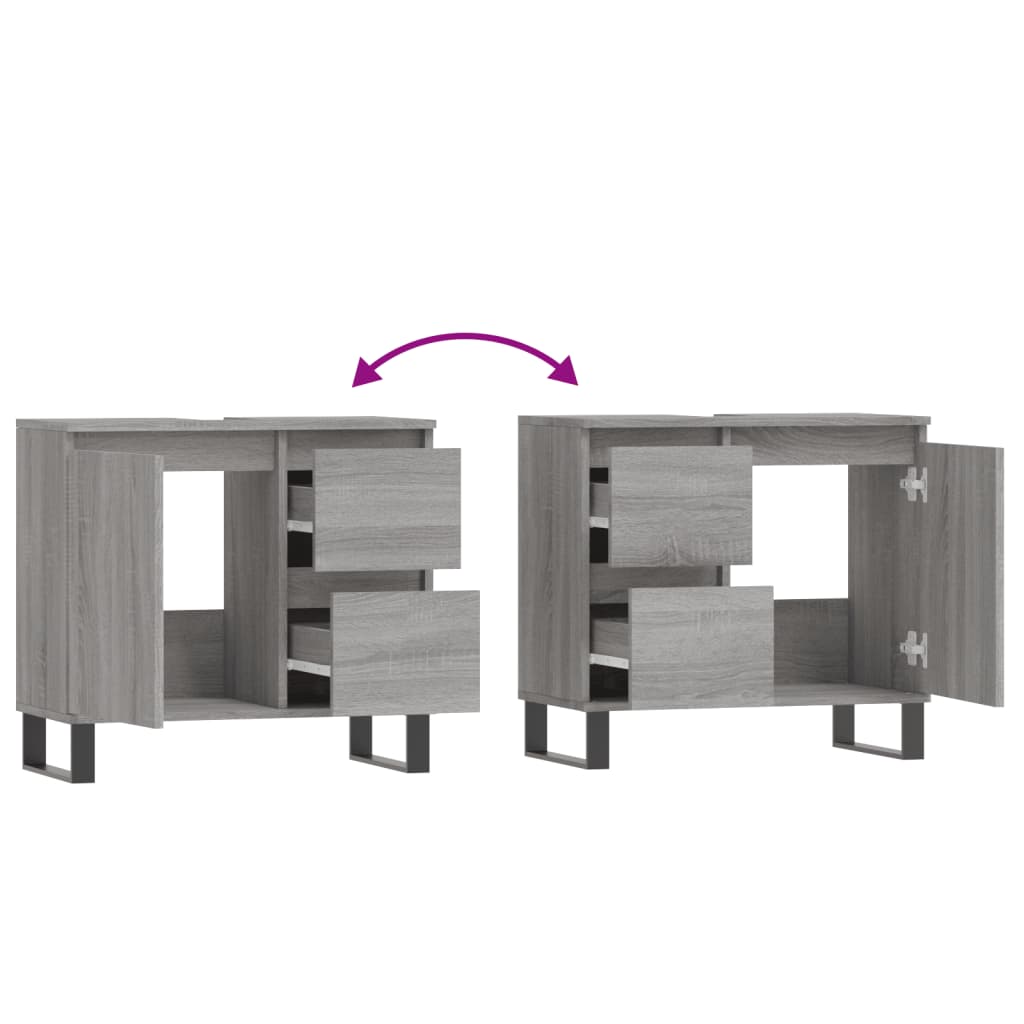 This bathroom cabinet is meant to be a great addition to your bathroom, giving it a tidy and striking appearance! Durable material: The engineered wood is of exceptional quality with smooth surface and also features strength, stability, and resistance to moisture.Ample storage space: The bathroom furniture has 1 compartment with door and 2 drawers, offering various storage options and extra space to store items in your bathroom.Flexible door installation: You can install the door and drawers either on the left or right side based on your own needs.Iron feet: The iron feet add an industrial style to your interior while ensuring the stability of the bathroom storage cabinet. Warning:To prevent it being overturned, this product must be used with the provided wall attachment device.