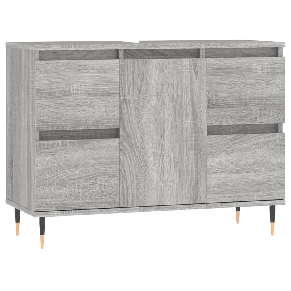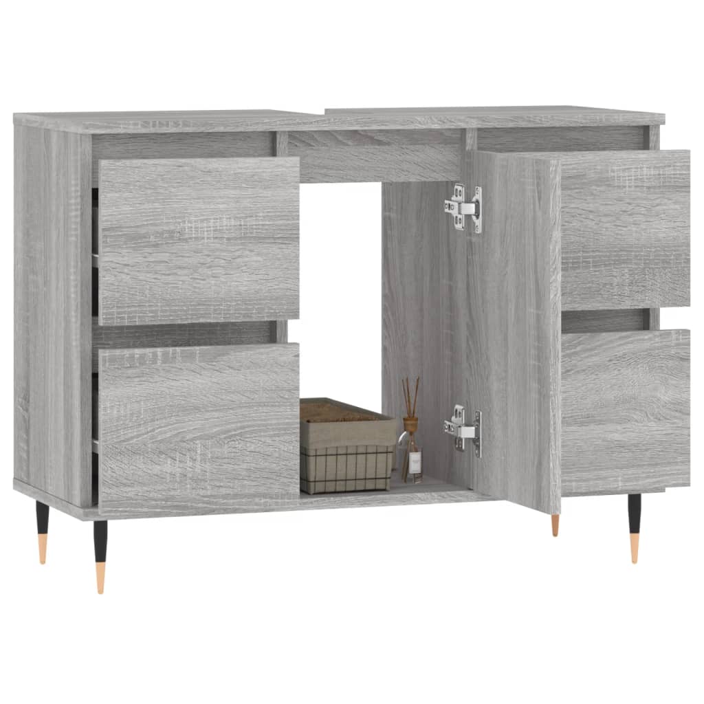 This bathroom cabinet is meant to be a great addition to your bathroom, giving it a tidy and striking appearance! Durable material: The engineered wood is of exceptional quality with smooth surface and also features strength, stability, and resistance to moisture.Ample storage space: The bathroom furniture has 1 compartment with door and 4 drawers, offering various storage options and extra space to store items in your bathroom.Flexible door installation: You can install the door either on the left or right side based on your own needs.Iron feet: The iron feet add an industrial style to your interior while ensuring the stability of the bathroom storage cabinet. Warning:To prevent it being overturned, this product must be used with the provided wall attachment device.