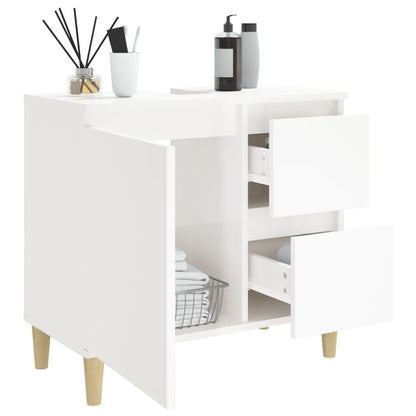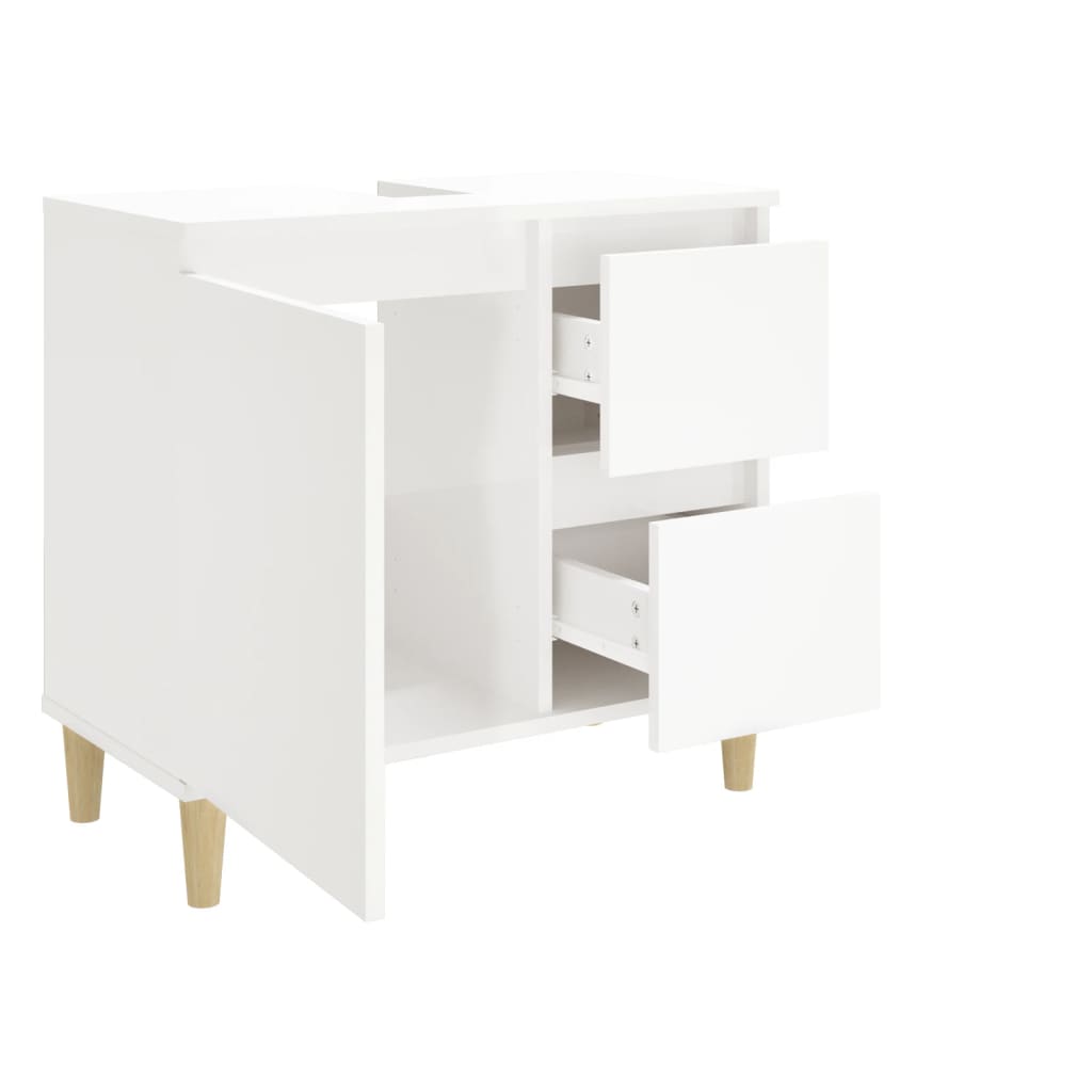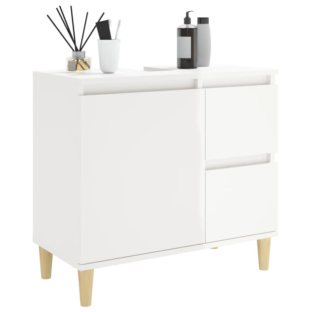 This bathroom cabinet is a great choice for your bathroom, making it tidy and organised! Durable material: The engineered wood is of exceptional quality with smooth surface and also features strength, stability, and resistance to moisture.Ample storage space: The bathroom furniture has 2 drawers and 1 compartment with door, offering various storage options and extra space to store items in your bathroom.Wooden feet: The solid eucalyptus wood feet give the bathroom cupboard a natural and pleasant look while ensuring stability.Flexible design: You can install the door and drawers either on the left side or right side based on your own needs. Warning:To prevent it being overturned, this product must be used with the provided wall attachment device.
