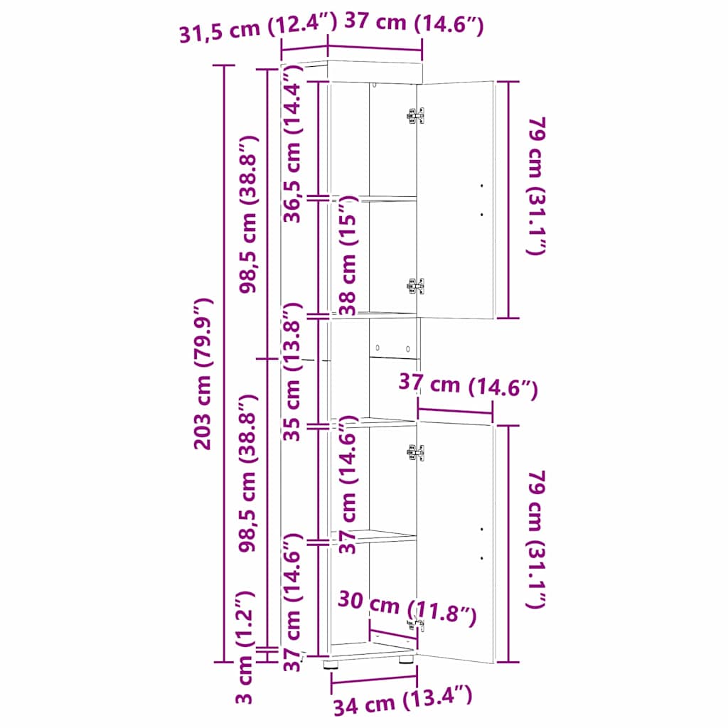 - 1 x Bathroom cabinet (34 x 31.5 x 203 cm)