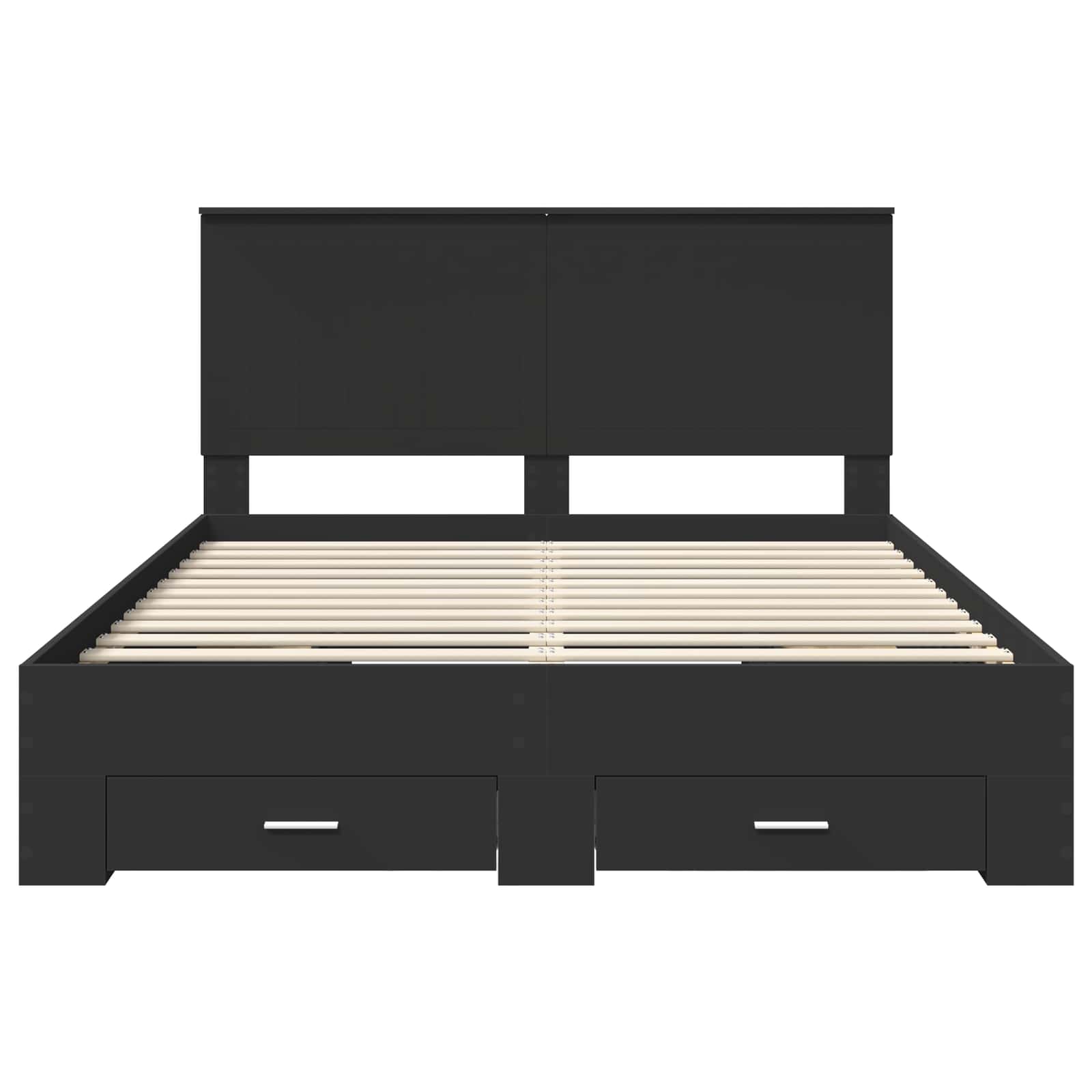 This Modern Storage Bed Frame elevates your bedroom with its sleek design and practical functionality. Characterized by clean lines and minimal ornamentation, the bed frame seamlessly blends into contemporary settings or serves as a striking contrast in eclectic interiors. Perfectly combining form and function, this bed offers ample storage space, making it an ideal choice for those who need additional room without sacrificing style. Whether it anchors your master suite or provides support in a guest room, the bed frame promises comfort and convenience with a minimalist flair. Engineered Wood Structure Crafted from premium engineered wood, this bed frame ensures a reliable, steadfast structure. The material is chosen for its ability to withstand daily use while maintaining a refined appearance. Engineered wood offers an ideal balance of strength and visual appeal, providing users with a durable platform that enhances the room's aesthetic. Multi-functional Headboard Featuring a headboard made from engineered wood, this bed adds a modern touch while doubling as a support for cushions and pillows. It not only complements the bed's overall design but also provides ergonomic comfort when sitting up in bed to read or relax, making it both functional and elegant. Generous Storage Options The bed includes traditional drawers with handles, offering an abundance of storage beneath the sleeping surface. Engineered wood compartments keep bedding, clothing, or other personal items neatly tucked away, allowing for a tidy, uncluttered bedroom environment while easily accessible yet concealed. Unique Handle Designs Equipped with sleek silver-colored bar handles, these drawers offer an effortless pull opening mechanism. The modern handles harmoniously contrast with the natural wood texture, enhancing the bed's contemporary profile and ensuring a smooth, comfortable grip. Simple Care and Maintenance Maintenance is straightforward with this bed frame. Simply wipe with a damp cloth to remove dust or debris, ensuring the frame retains its stylish look. The easy-care guidelines make it an optimal choice for busy lifestyles.