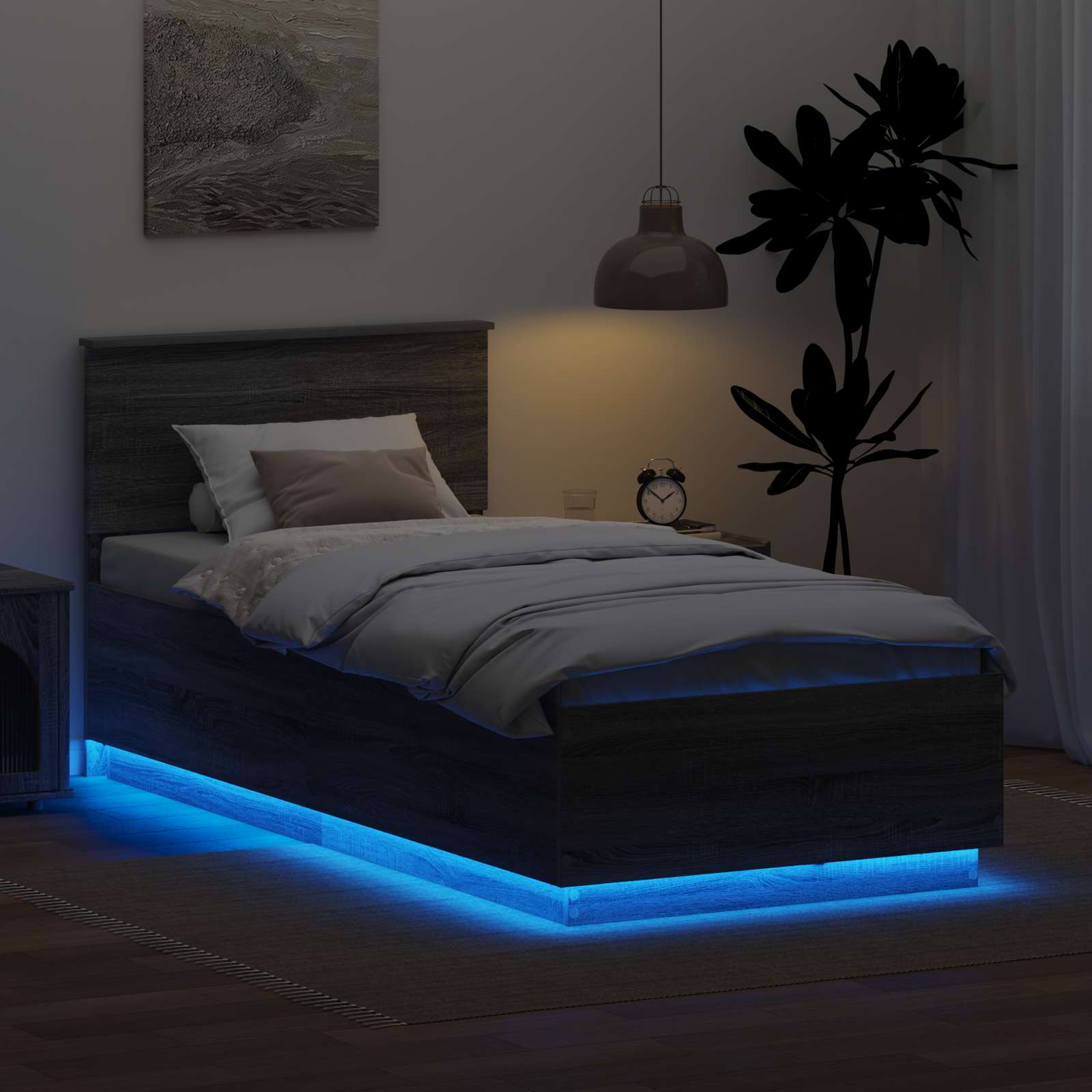 This modern bed frame will transform your bedroom with its sleek and contemporary design. Its frame, precision-crafted from engineered wood, offers a clean, minimalist look perfectly suited for any modern setting. Designed to enhance your sleeping experience, the bed features an adjustable headboard and calming LED strip lights for a beautifully illuminated backdrop –setting a delightful mood for relaxation. Materials: The bed frame is constructed from high-quality engineered wood, known for its strength and resistance to warping. This material choice ensures a consistent appearance and integrity, enhancing the modern aesthetic of your bedroom while providing stability and durability. Included Components: The bed comes complete with an adjustable, wall-mounted headboard that provides customizable support and an integrated storage solution. LED strip lights enhance the frame, offering ambient lighting options, while a handy USB plug allows for device charging right from the comfort of your bed. Features /Function /Design: An adjustable headboard provides personalized comfort, supporting various sitting positions for reading or relaxing. The USB port supports convenient gadget charging without messy cables, while multicolor LED lights add a touch of elegance and personalization to your space. Recommended Uses: Perfect for modern, minimalist bedroom settings, this bed frame's stylish appearance can transform any bedroom into a contemporary haven. Its adaptability makes it suitable for tech-savvy users who appreciate integrated electronics and a versatile sleeping environment. Care &Maintenance: To maintain the bed’s pristine look, simply wipe down with a damp cloth. This straightforward care requirement ensures the bed remains a visually appealing centerpiece while extending its lifespan.