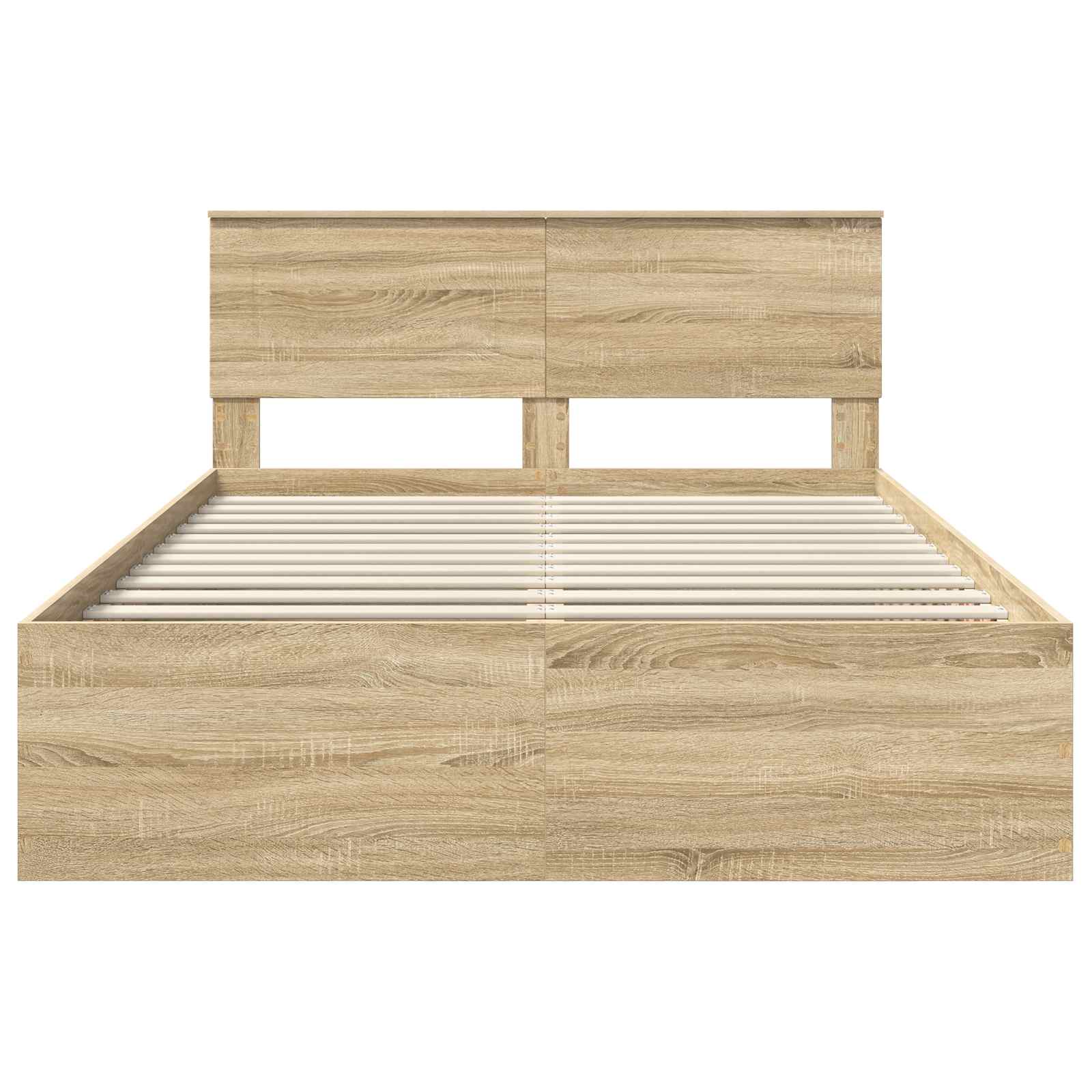 This Modern Bed Frame combines form and function to create a striking addition to any bedroom. With its sleek, rectangular design, the bed frame lends a contemporary touch, elevating the room's aesthetic appeal. Its clean lines and thoughtful craftsmanship make it a versatile piece suitable for a range of interior styles. Built from engineered wood, the frame promises durability without sacrificing elegance, allowing users to enjoy both comfort and style. Whether nestled in a spacious master suite or a cozy guest room, this bed frame enhances any sleep environment. Engineered Wood Material Crafted from premium engineered wood, this bed frame offers an excellent balance of affordability and durability. The material is known for its strength and bench-grade surface, effortlessly standing the test of time while providing a modern silhouette that complements bedroom decor. Its abrasion-resistant quality ensures good looks endure, making it a resilient choice that withstands everyday use. Included Components This package contains both a bed frame and a matching headboard, crafted to harmonize visually while offering practical support. The headboard provides a comfortable backrest when reading or watching TV, while the bed frame's slatted base supports the mattress firmly. Together, they create a cohesive sleep environment that combines comfort and aesthetic unity. Modern Design Features The simple, modern lines blend easily into varied room themes, pairing well with minimalist and sophisticated decor. The fixed slatted frame is practical yet stylish, ensuring that aesthetics aren't sacrificed for function. This visually light design is perfect for urban lofts, contemporary flats, or stylish bedrooms looking for an uplift. Recommended Use Ideal for master bedrooms or guest rooms, this bed frame serves as a stable base for numerous mattress types. The engineered wood construction allows it to fit seamlessly into any room while enhancing comfort and sleeping quality. It's well-suited for homeowners seeking strength and an elegant look both in their primary and secondary sleeping areas. Care &Maintenance To maintain its pristine condition, wipe surfaces with a soft, dry cloth regularly. Do not use abrasive cleaners as they may damage the finish. Assembly is simplified requiring just a screwdriver, supporting long-term use and ease of maintenance. With straightforward care, this bed frame remains a staple in your bedroom for many years.