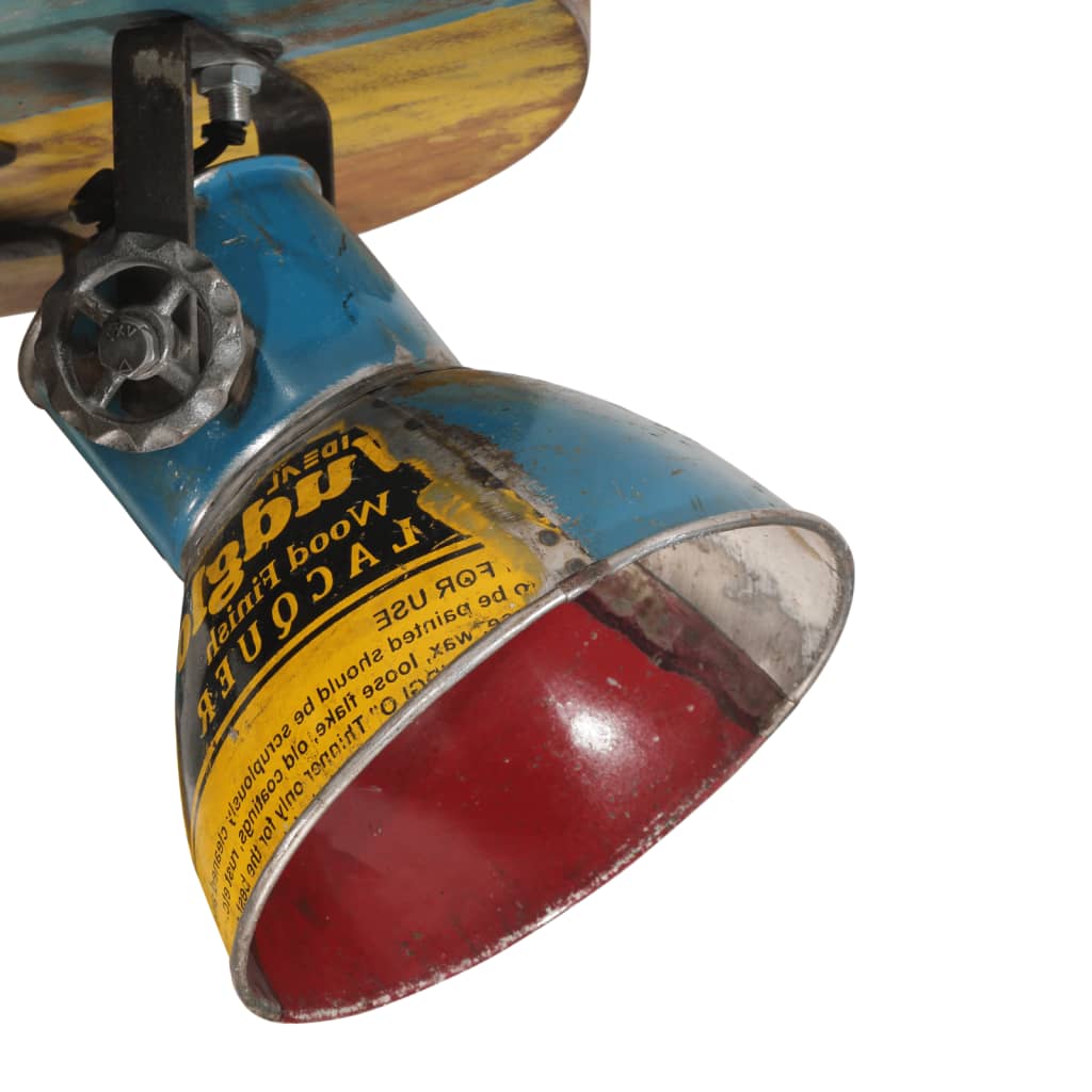 This ceiling lamp is definitely a highlight in the living room, dining room, offices, and more. Robust and stable: Solid mango wood is a strong, tropical hardwood that makes sturdy furniture. Its beautiful wood grains make every piece of furniture slightly different from the next. Hand-painted colour: As every piece is handmade and unique colours will vary for each product. 5-lampshade design: The ceiling light, with 5 lampshades, has five E27 sockets for bulbs of a maximum of 25 watts. You can choose and install E27 bulbs with various light colours, creating an atmosphere of relaxation and restfulness. Industrial style: The iron lamp shade, featuring a reclaimed mix colour finish, will fit perfectly into a rural or industrial interior. Good to know:This is an industrial style lamp with imperfections at the lampshade, which gives the identity for the lamp and makes it unique with its rough looking. The bulbs are not included.