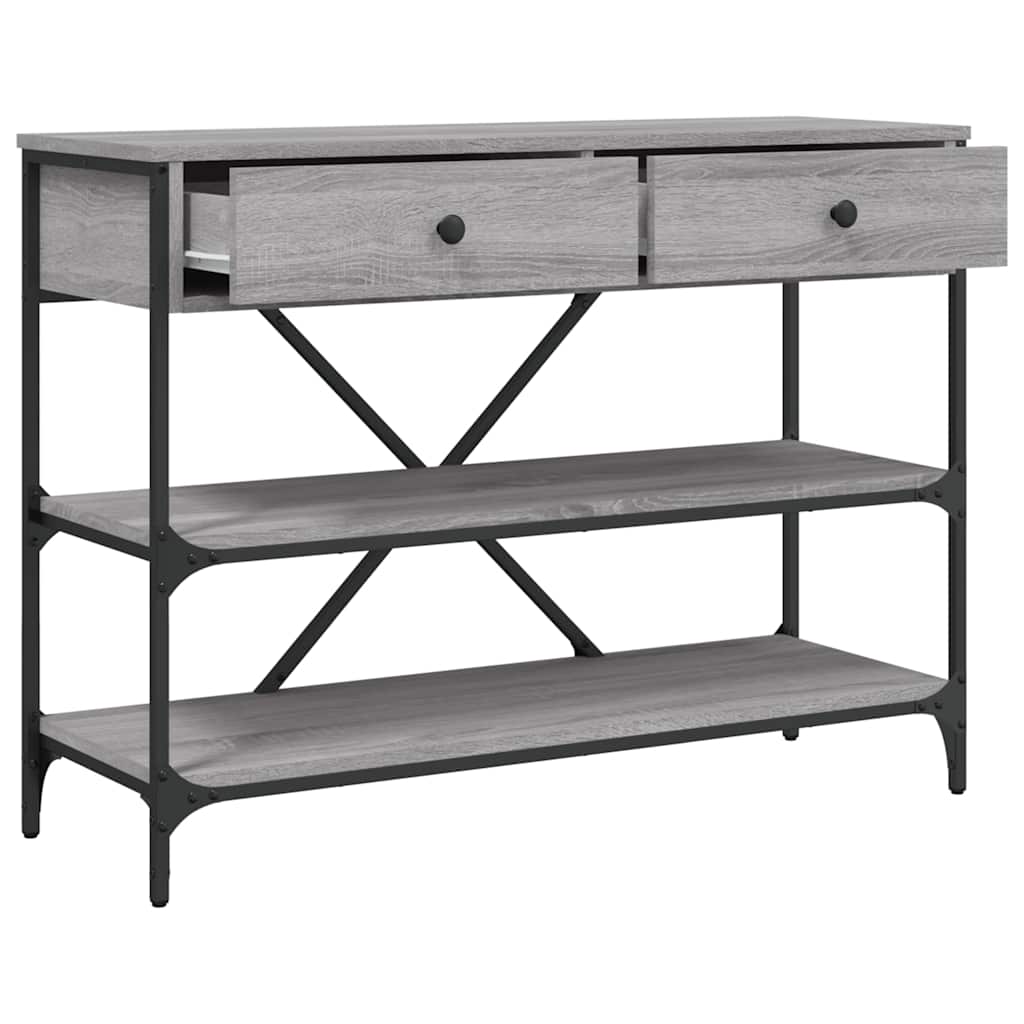 This classic console table will make a practical and decorative addition to your home decor. Durable material: The engineered wood is of exceptional quality with smooth surface and also features strength, stability and resistance to moisture.Sturdy frame: The sofa table is constructed with a robust steel frame. Steel is an exceptionally hard and strong material. It offers sturdiness and stability. Ample storage space: This practical hall table has 2 drawers and 2 bottom shelves, providing ample space for keeping your books, plants, storage boxes, decorations, etc.Displaying function: You can also place your favourite photos, decorations, or flowers on top of the side table to enrich your life. Warning:To prevent it being overturned, this product must be used with the provided wall attachment device.