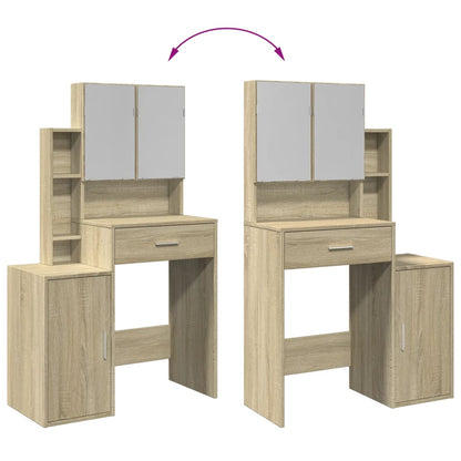 The dressing table is a great addition to your bedroom decor while keeping your cosmetics close at hand! Stable and durable material: Engineered wood is a durable and stable material with a smooth surface that is resistant to moisture, warping, and splitting, making it a reliable choice for a variety of projects.Ample storage space: The makeup table with 1 drawer and 8 compartments offers ample storage space for keeping your various daily essentials well organised and within easy reach.Utility mirror: A beautiful mirror provides the view for makeup application and adds an elegant touch to the vanity desk. Warning:To prevent it from tipping over, this product must be used with the provided wall attachment device.