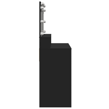The dressing table is a great addition to your bedroom decor while keeping your cosmetics close at hand! Stable and durable material: Engineered wood is a durable and stable material with a smooth surface that is resistant to moisture, warping, and splitting, making it a reliable choice for a variety of projects.Ample storage space: The makeup table with 2 drawers and 3 compartments offers ample storage space for keeping your various daily essentials well organised and within easy reach.Utility mirror: A beautiful mirror provides the view for makeup application and adds an elegant touch to the vanity desk.LED light: The vanity table has LED bulbs with USB, which are easy to switch modes from warm to cold white. The featured LED bulbs around the mirror illuminate your beauty as well. Warning:To prevent it from tipping over, this product must be used with the provided wall attachment device.