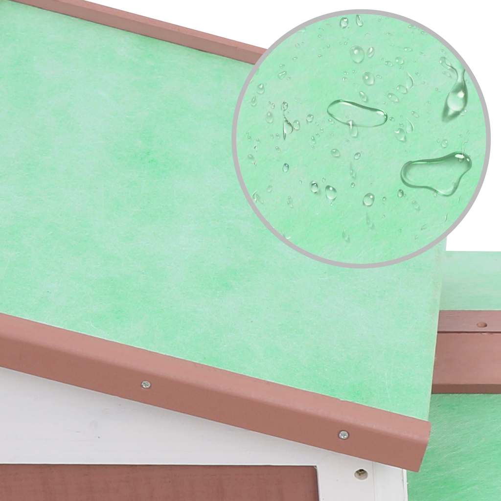 Give your furry friends a comfortable living space with our deluxe wooden hutch! This hutch of 2 layers provides a large cosy place for keeping small animals, especially rabbits. It features multiple uses: playing, exercising, training or simply keeping your pets safely. It is built with solid painted fir wood that is long-lasting and safe for animals. An asphalt roof keeps your furry friends away from outside weather elements. Raised perch keeps your small animals safe, dry and warm, especially on rainy days. Your pet can easily enter the raised housing area with included ramp. Designed for simple maintenance, it contains a removable dropping tray for easy cleaning. The outdoor run with durable fencing wiring ensures sufficient ventilation and keeps pet in and predators out. Lockable doors protect your pets and allow you to easily take them in and out. The hutch is easy to assemble with all necessary hardware included. Important note: We recommend you placing the rabbit cage under shelter. Accordingly, it will last a longer life.