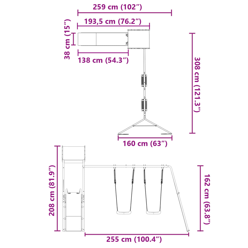 - Swing dimensions: 32.5 x 22 x 104.5 cm (W x D x H)