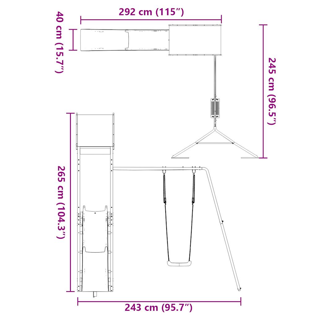 Do you want to give your children the freedom to play at home? This wooden outdoor playset transforms your backyard into a playground for imaginative adventures! Durable material: This garden playset frame is made of solid pine wood. Solid pinewood is known for its strength and durability. Its straight grains and distinctive knots contribute to its rustic charm.Stable wooden frame: The wooden frame of the garden playhouse ensures sturdiness and stability. In addition, the "A" shaped legs of the children's swing allow for balance.Multi-activity centres: The climbing frame features a 118 cm height platform and stands out with its wave slide, a single swing as well as a sandpit. Your little ones can also invite their friends to join the fun.Thoughtful design: The surrounding wooden railings are designed to ensure the safety of children during their happy play. Also, the cloud roof provides shade for your children on hot summer days.Endless fun: This fun-filled wooden outdoor playset is the perfect way for your children and their friends to enjoy entertainment, have more interactive time and make memories for you and your children! Warning:Only for domestic useOutdoor useNot suitable for children under 3 yearsRecommend user age: 3-8 years old