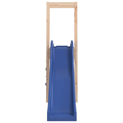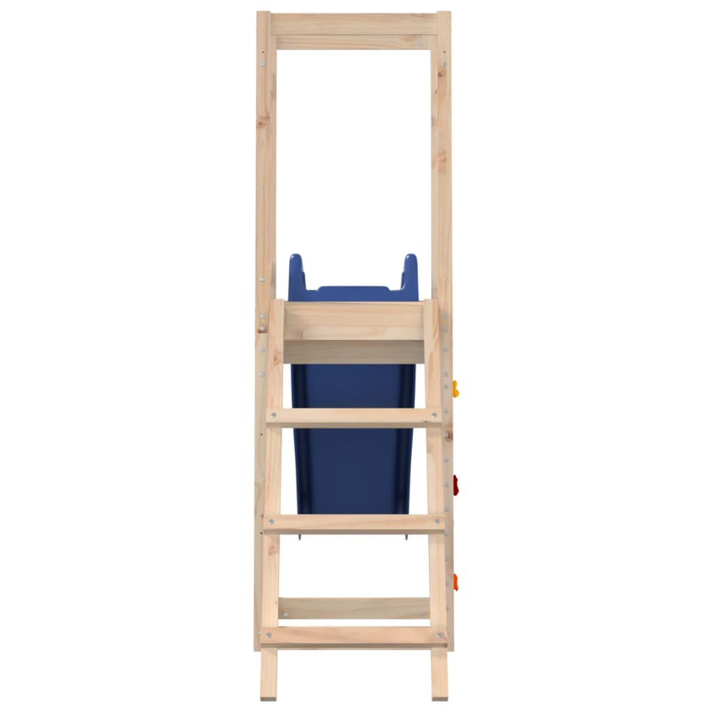 Do you want to give your children the freedom to play at home? This wooden outdoor playset transforms your backyard into a playground for imaginative adventures! Durable material: This climbing frame with slide is made of solid pine wood. Solid pine wood is a beautiful natural material. Pine wood has a straight grain, and the knots give the material its signature, rustic look.Sturdy and stable frame: The wooden frame of the garden climbing frame ensures sturdiness and stability.Multi-activity centres: The climbing frame features a 90 cm height platform and stands out with its rockwall, wave slide as well as a sandpit. Your little ones can also invite their friends to join the fun.Thoughtful design: The surrounding wooden railings are designed to ensure the safety of children during their happy play.Endless fun: This fun-filled wooden outdoor playhouse is the perfect way for your children and their friends to enjoy entertaining time, have more interactive time and make memories for you and your children! Warning:Only for domestic useOutdoor useNot suitable for children under 3 yearsRecommend user age: 3-8 years oldMaximum per user weight: 45 kgNote:The product shall be anchored in order to reduce tipping hazards. The anchors are not included. Good to know:To make assembly as easy as possible, each product is delivered with a manual.