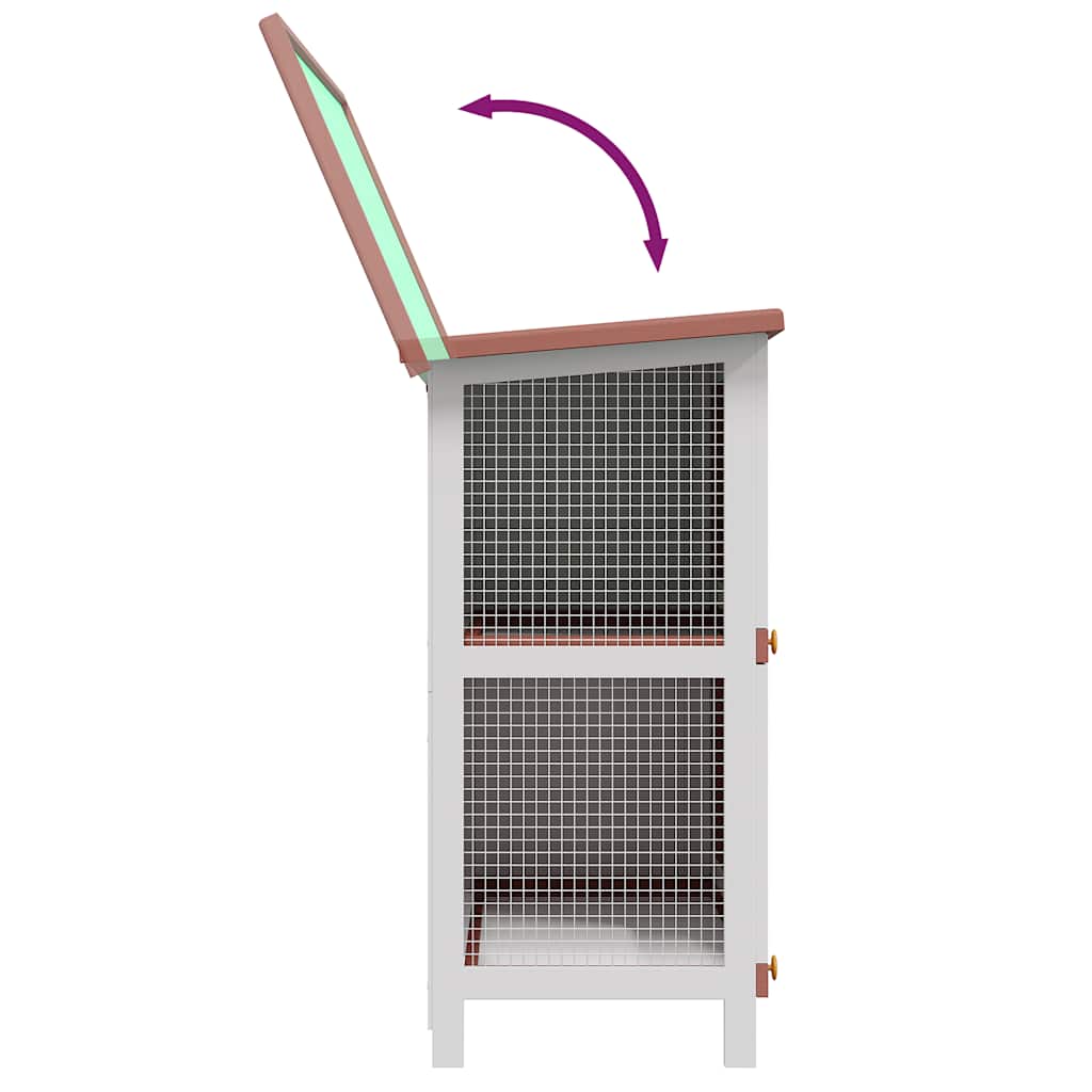 This quality hutch of 2 layers provides a large cozy place for keeping small animals, especially the cute rabbits. It features multiple uses: playing, exercising, training, or simply keeping your pets safely. This rabbit hutch provides your pets with plenty of exercise space while the tight iron wire mesh helps prevent mischievous behaviors and unexpected accidents. Meanwhile, the construction of iron wire grid ensures your monitoring of the pets and enables your pets to keep an eye on the surroundings and get enough fresh air. The rabbit hutch is built with high-quality wood frame, making it a strong and safe enclosure that lasts for years. Its green roof keeps rain away while the cozy cubby makes the perfect sleeping area. Two pull-out trays make cleaning easy. And the doors close easily and lock with slide-bolt latches. This wooden rabbit cage is perfect for small pets. Important note: We recommend you placing the rabbit cage under shelter. Accordingly, it will last a longer life.
