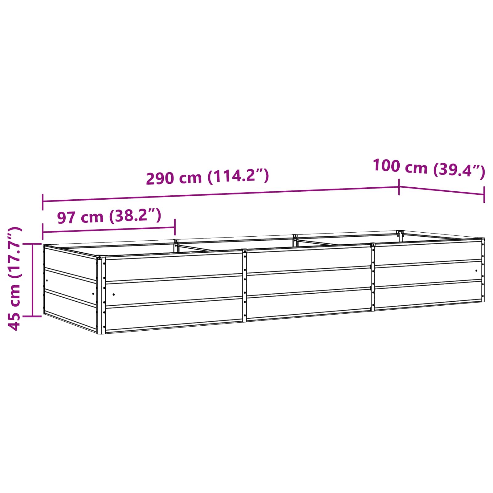 - Overall dimensions: 290 x 100 x 45 cm (L x W x H)