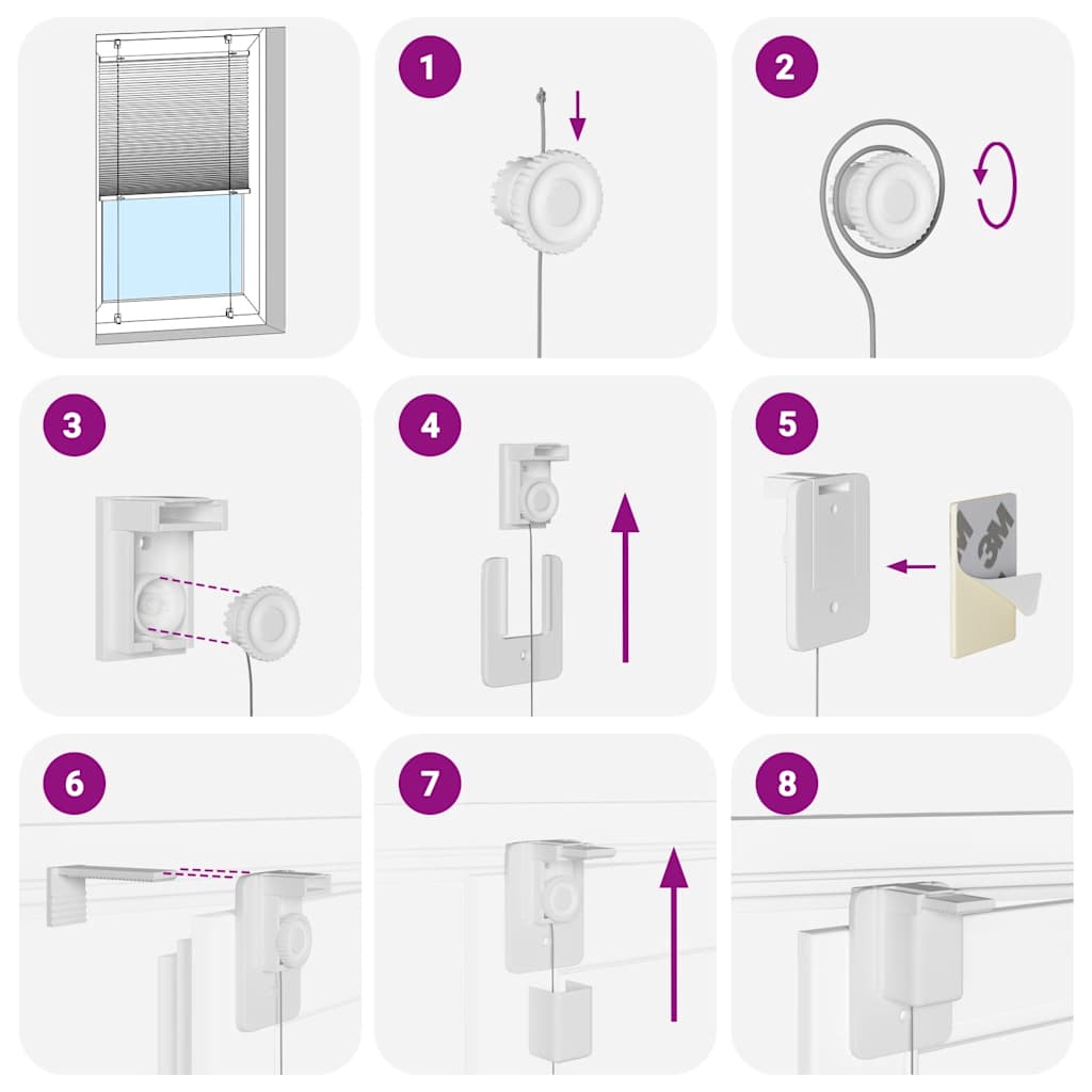 Elevate your room's style and functionality with this pleated blind, offering privacy and elegance. Durable and low maintenance: Made from 100% polyester, the pleated blind is built to last and resist wear and tear. They are also easy to clean, typically requiring light dusting or wiping with a damp cloth.Privacy and sun protection: The blind is not transparent but also not fully darkening, providing optimal privacy and glare protection with its pleated fabric. You can adjust the level of privacy by moving it up or down.Two assembly ways: You can attach the pleated blind to the wall or window with screws or without drilling using clamping brackets, depending on your needs.Elegant design: Thanks to its sleek and modern pattern design, this pleated blind effortlessly complements a variety of room decor. You can use it in the living room, bedroom, office, and so on. Warning: Keep cords out of the reach of young children. Cords may become wrapped around a child’s neck. Good to know:Before buying blinds, start by measuring your window glass. Just a friendly tip: the fabric is a bit narrower than the total width, including the brackets.To make sure your new blinds provide complete coverage, just add 0,6 cm to the width of the window glass when calculating what to order.