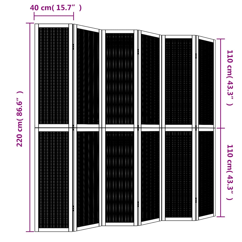 vidaXL Room Divider 6 Panels Brown Solid Wood Paulownia