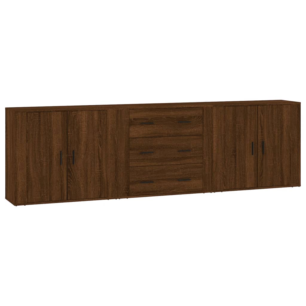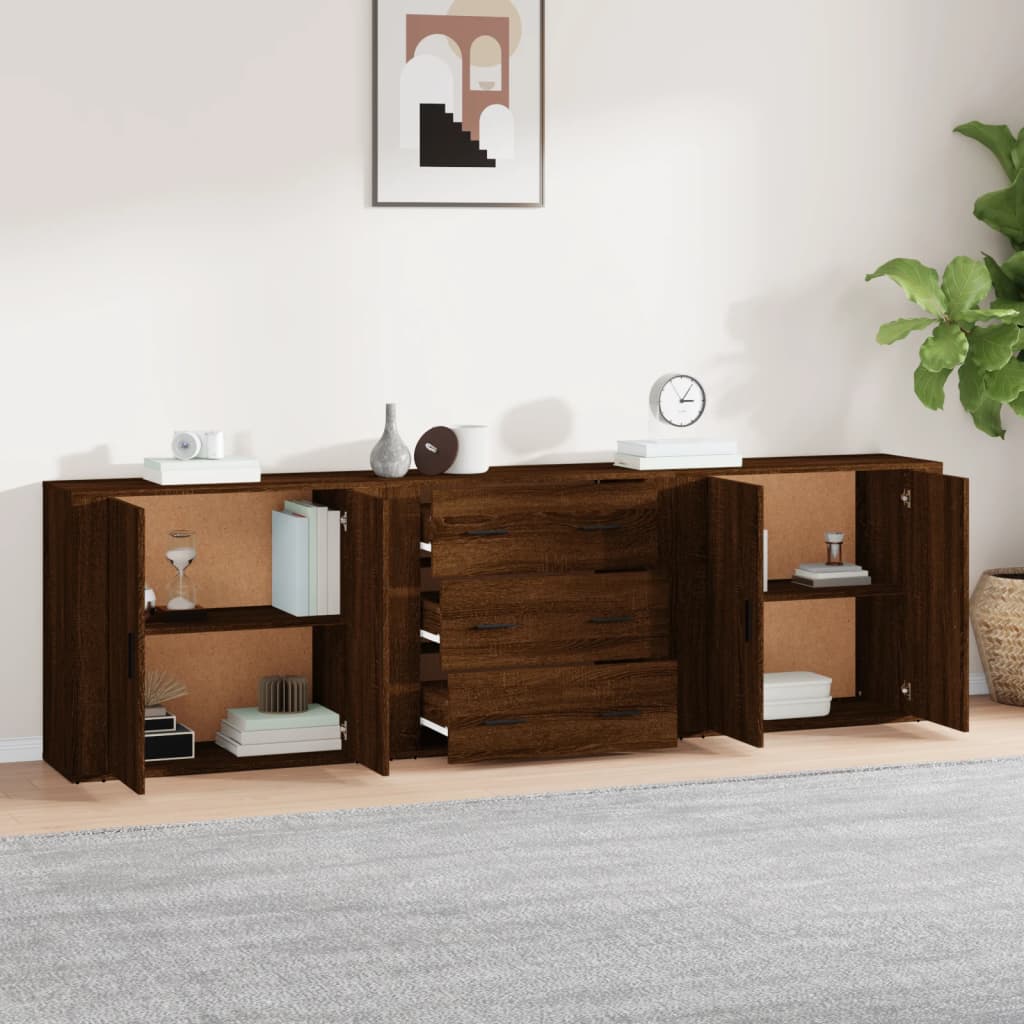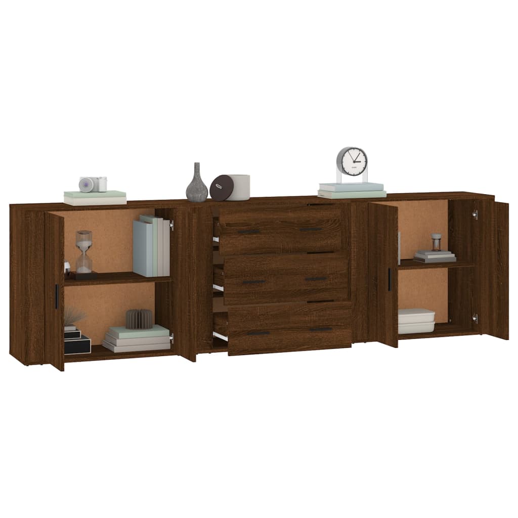 These classic sideboards, featuring a timeless look, are meant to be an excellent addition to your home. Durable material: The engineered wood is of exceptional quality with a smooth surface and features strength, stability and resistance to moisture.Ample storage space: The cabinet offers ample storage space for keeping your various daily essentials well organised and within easy reach.Displaying function: You can also place your favourite photos, decorations or flowers on top of the storage cabinet to enrich your life. Good to know:To make assembly as easy as possible, each product is delivered with a manual. Warning:To prevent it being overturned, this product must be used with the provided wall attachment device.