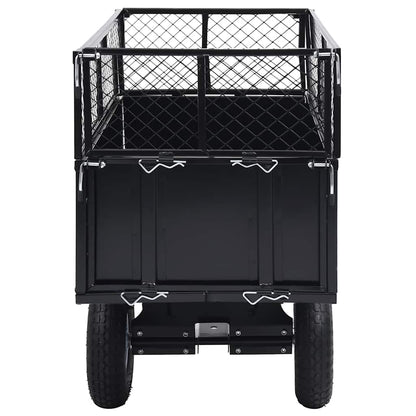 This tipping trailer for lawn mower can be attached to all standard lawn mowers. It is an excellent assistant for your heavy tasks such as garden work. This garden trailer has a load capacity of up to 150 kg. The height can be extended up to +22 cm. The side walls can be folded down and tilted back. The delivery includes a universal coupling device to attach the trolley (by bolts).