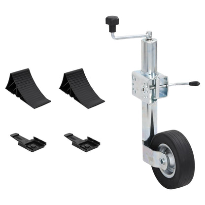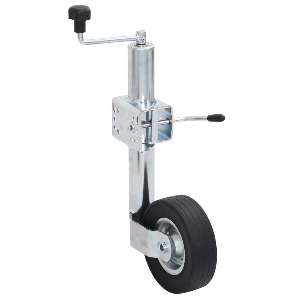 This trailer jack wheel contains the necessary accessories to ensure the proper parking of your trailer and increase your safety when loading and unloading. Durable material: The wheel trailer is made of galvanised steel, which makes it resistant to rust and weather. In addition, the solid rubber wheel allows you to move the tool around your trailer easily when the trailer jack wheel is attached. Adjustable design: This car jack can be adjusted to a maximum height of 87,5 cm and a minimum of 63 cm, more than enough to help detach couplings or lower them onto most tow balls. Practical clamp: The clamp is equipped with a rubber grip on the end of the handle for easier manoeuvring. It opens to allow quick and easy removal of the support frame and wheel. Wheel chocks: The clever design of these wheel chocks helps the wheel blocker slot into an angle with great ease. Also, the ribbed top surface allows wheels to grip on for a prolonged time, which allows you to keep the car stable for ultimate safety.