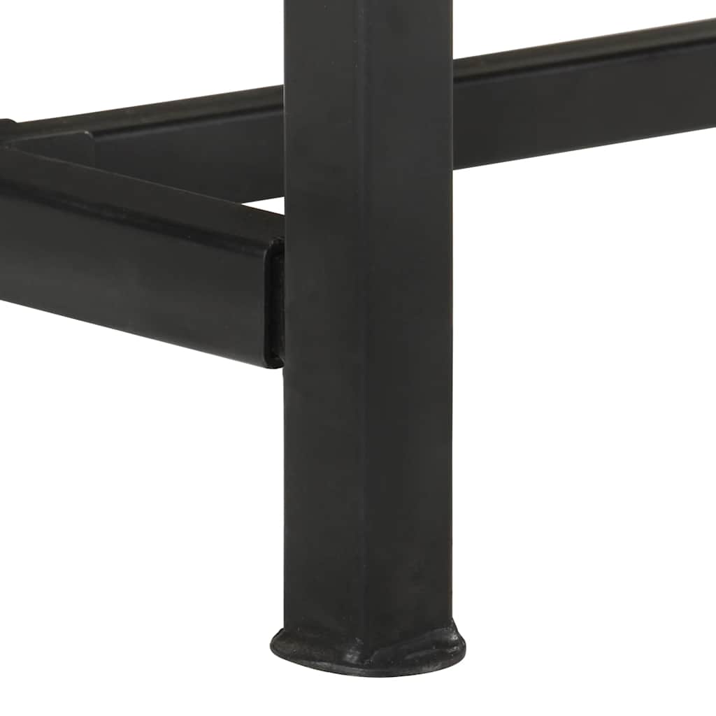 - Material: Solid reclaimed wood with a brown finish, iron